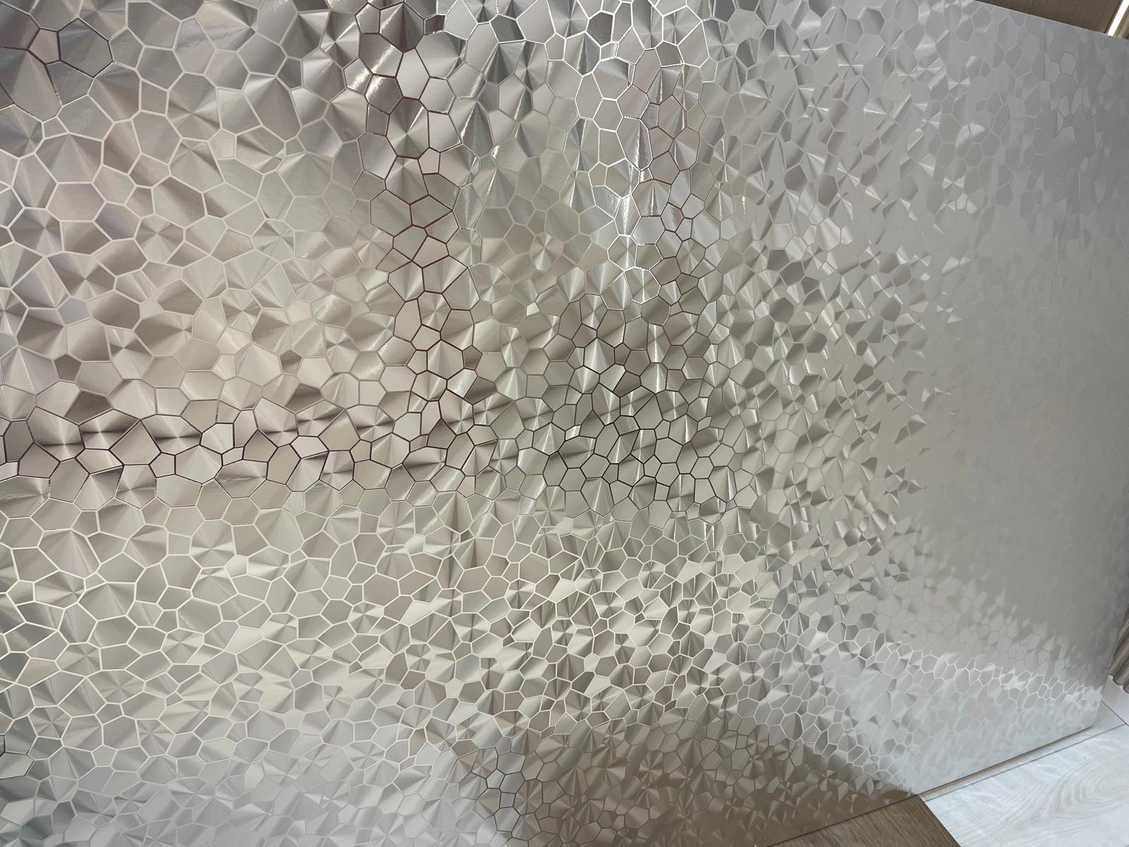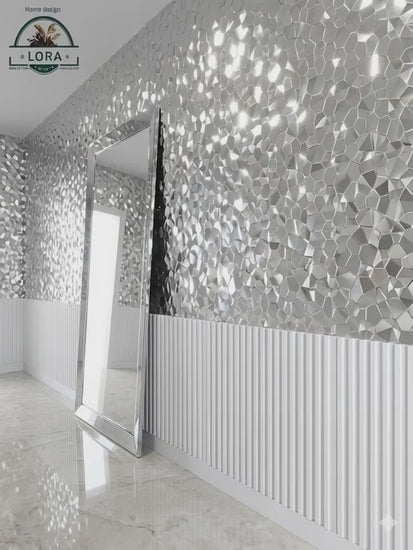 לוח Water Crystal מציג עיצוב ייחודי בהשראת גבישי מים, עם טקסטורה תלת־ממדית מרהיבה המשקפת אור ויוצרת משחקים דינמיים של עומק ונפח. המראה האלגנטי והעתידני שלו הופך כל קיר לאלמנט עיצובי מרשים, המתאים במיוחד לחללים מודרניים, יוקרתיים ומוארים היטב.