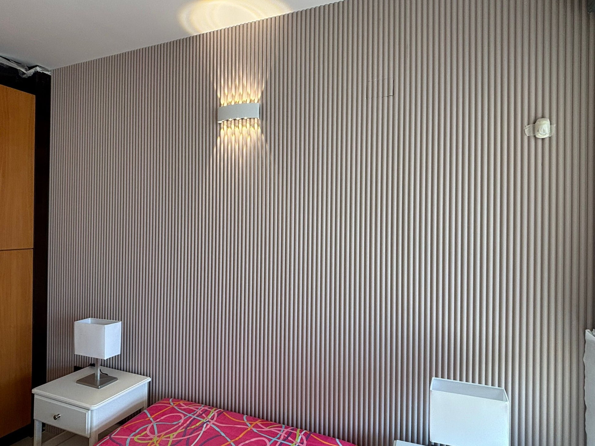 חיפוי קיר דמוי בד בגוון חום־אפרפר | דגם 158-385 | 280×15 ס״מ | חיפוי קיר לורה